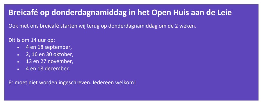 Ferm: Breicafé op donderdagmiddag in Open Huis
