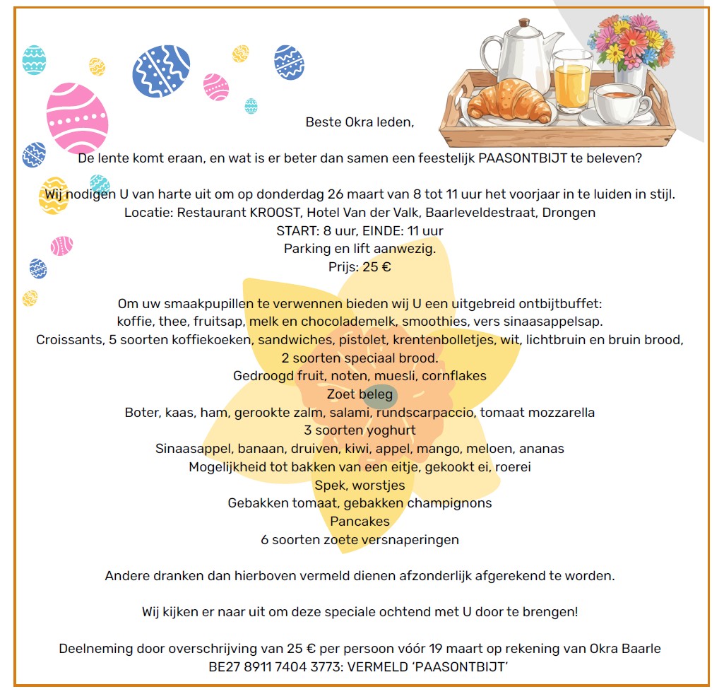Okra Baarle: Feestelijk Paasontbijt
