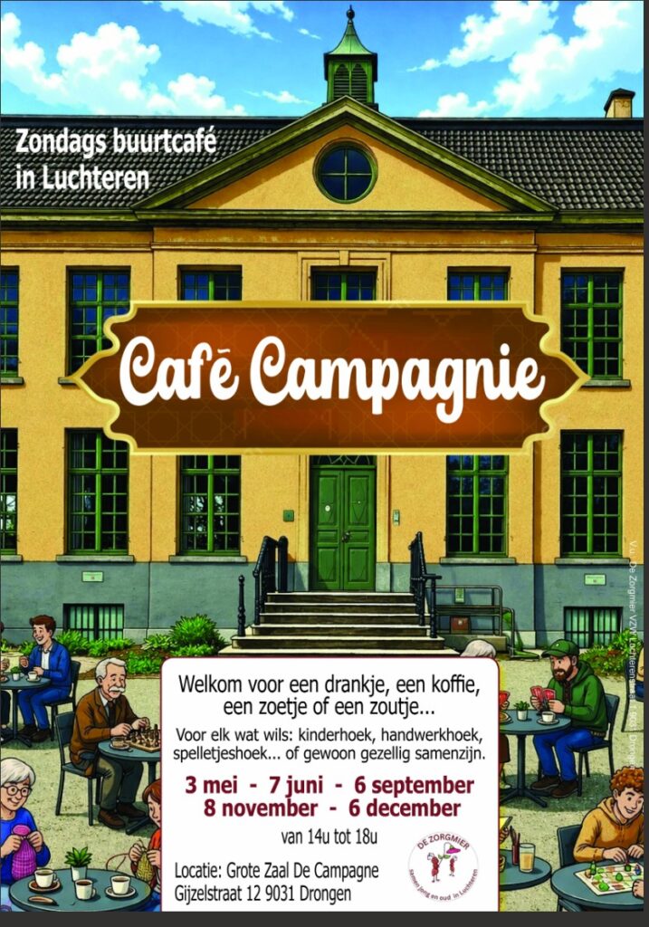 Goed nieuws voor iedereen in Luchteren! Op zondag 3 mei gaat het eerste buurtcafé door in de grote zaal van de Campagne. Kom langs voor een babbel, een lekker drankje, hapje en een fijne sfeer. Je kan zelf gezelschapsspelen meebrengen of een handwerkje… of gewoon iets wat je wil delen met je buren. Kinderen krijgen extra aandacht met een knutselhoek. Neem gerust vrienden, familie of buren mee en we maken er samen een gezellige start van.