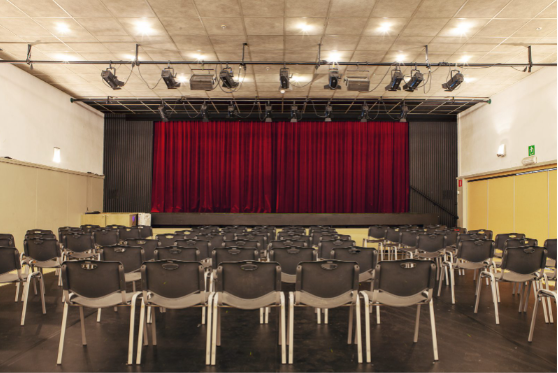 Deze grote feestzaal van 150 m2 is beschikbaar voor: shows, lezingen, feesten en danslessen.